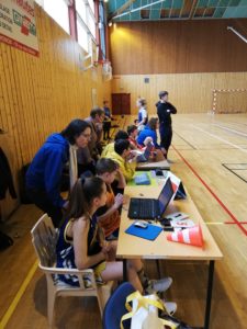 Après 3 jours d’apprentissage, nos jeunes ont endossé à tour de rôle les maillots de joueurs, OTM et arbitres lors de vrais matchs. Chaque arbitre apprenti était encadré par des arbitres confirmés et Martine veillait sur les OTM.