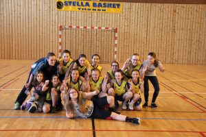 Comme trop souvent les stelliennes entament le match en « escargot » et arrivent à la mi-temps sur le score de 15 à 19 pour l’adverse. Heureusement les filles sont solidaires et motivées et c’est avec envie et détermination qu’elles entament la seconde mi temps. Elles remontent le score petit à petit sans se précipiter, telle était la consigne ! L’équipe tient bon physiquement et l’emporte 22 à 8 au dernier 1/4 temps ce qui nous permet de finir le match, gagnante avec un score de 47 à 35. A noter que toutes les filles ont marquées !! Bravo à toutes pour cette saison, pour la 1ère place du challenge benjamines et pour cette belle progression collective !